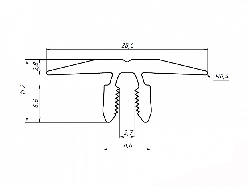 Профиль прижимной двухсторонний, паз 8 (Ан. серебро) Арт. C8S2