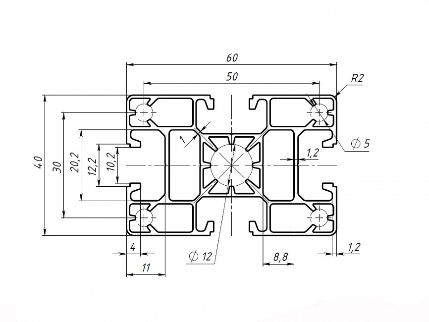 Профиль конструкционный 40х60SL (Без покрытия) Арт. 446SLX