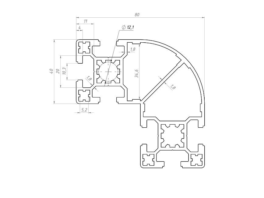 Профиль конструкционный 80х80.22R90L (Без покрытия) Арт. 488.22R90LX
