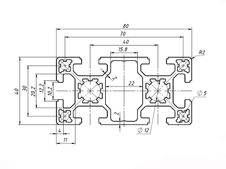 Профиль конструкционный 40х80 (Ан. черный) Арт. 448B