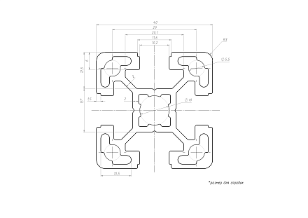 Данный алюминиевый профиль сечения 40х40 мм относится к наиболее универсальной и востребованной на рынке серии. Его ключевой конструктивной особенностью является уменьшенный внутренний диаметр центрального канала, стандартизированный под диаметр 10 мм. Это обеспечивает идеальную совместимость с огромным ассортиментом стандартного крепежа и фурнитуры, специально разработанных для паза 10 мм, включая Т-гайки, сухари, адаптеры и соединители. Благодаря такому решению достигается оптимальный баланс между высокой прочностью соединений, эстетикой сборки с утопленным крепежом и удобством монтажа. Основные плюсы профиля — исключительная взаимозаменяемость компонентов, надёжность создаваемых каркасов и скорость сборки за счёт отработанной стандартизированной системы.