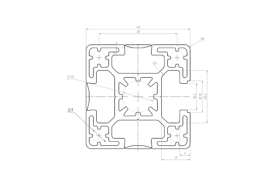 Серия 40 является наиболее распространённой и широко применяемой серией алюминиевого конструкционного профиля. Обладая значительной прочностью и жёсткостью при малом удельном весе, профиль находит широчайшее применение при изготовления различных конструкций, начиная со сборки рабочих столов, верстаков, ограждений промышленного и лабораторного оборудования и заканчивая конвейерными системами и станинами тяжелых станков и машин. Данная конфигурация профиля имеет три закрытых паза.