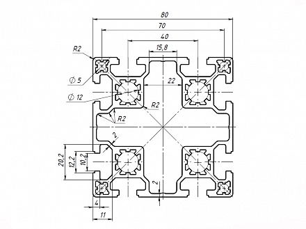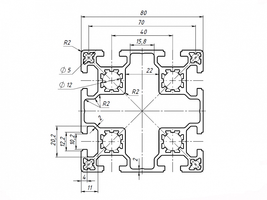 Профиль конструкционный 80х80 (Ан. серебро) Арт. 488
