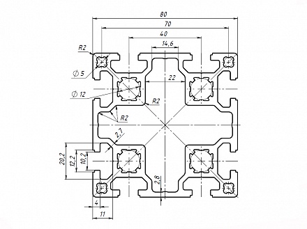 Профиль конструкционный 80х80H (Ан. серебро) Арт. 488H