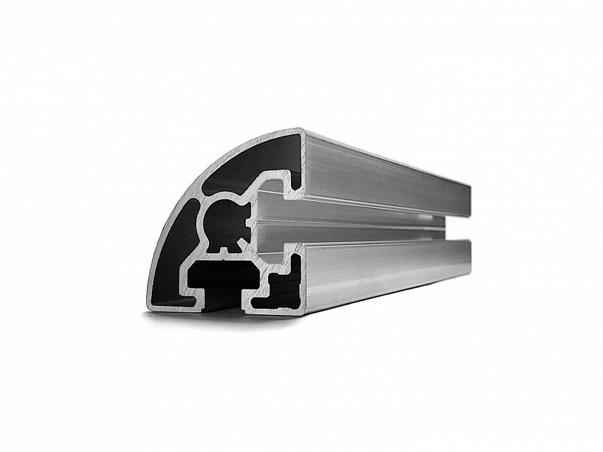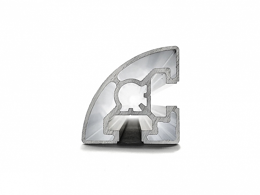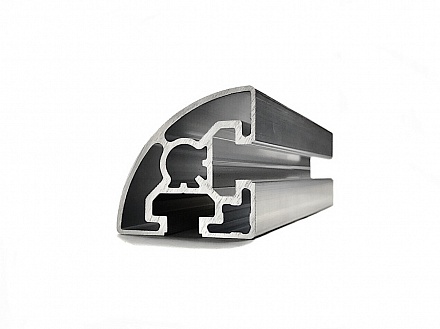 Алюминиевый профиль серии 45 с пазом 10 мм применяется для простых конструкций, воспринимающих средние нагрузки. Скругление профиля с внешней стороны придает конструкции эстетический вид.