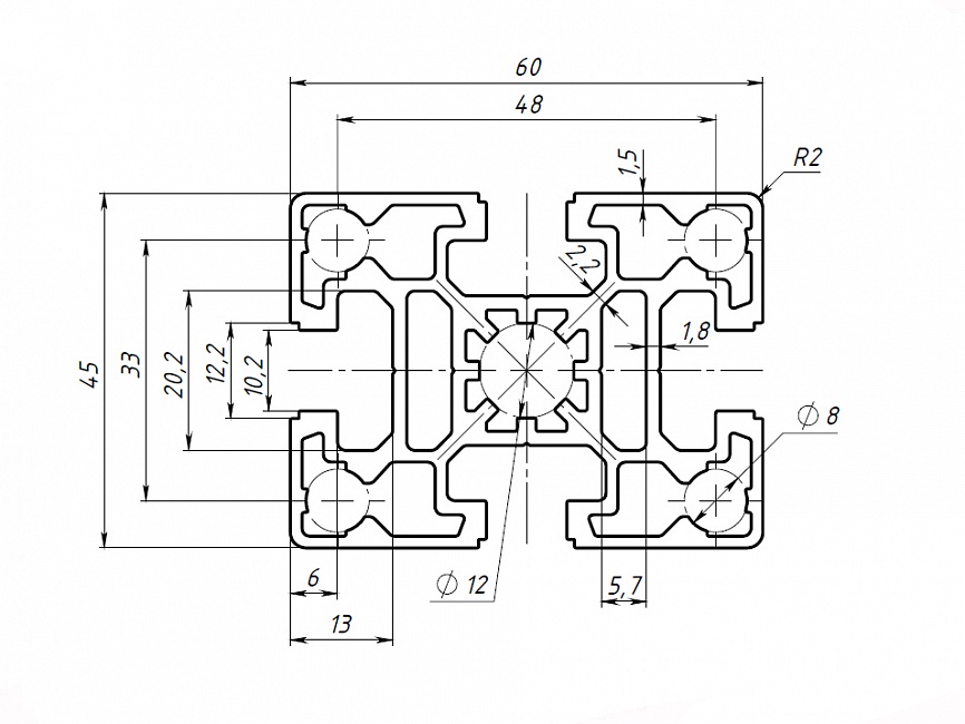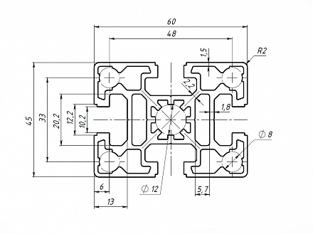 Профиль конструкционный 45х60 (Без покрытия) Арт. 556X