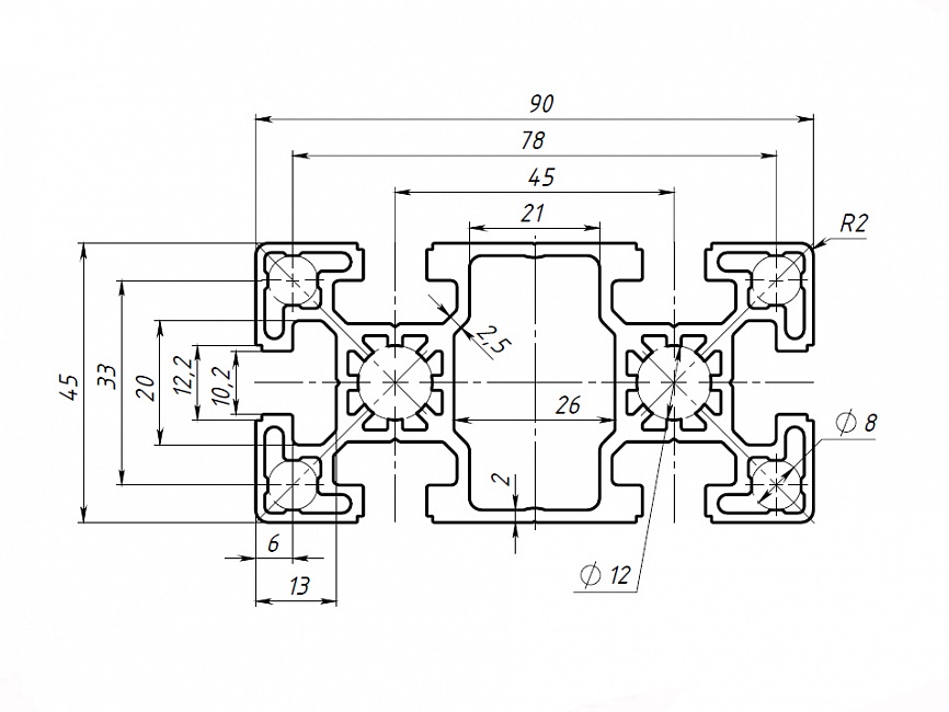 Серия 45 - универсальная серия профиля с т-образным пазом, предназначенная для построения несущих и средненагруженных конструкций. Является отличной альтернативой профиля Серии 40. Широко применяется при реализации крупных проектов (поточные линии, конвейеры, сборочные линии и участки) как профиль наилучшим образом сочетающий в себе высокую надежность и приемлемую цену.