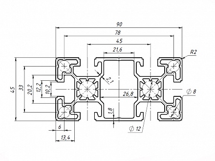 Серия 45 - универсальная серия профиля с т-образным пазом, предназначенная для построения несущих и средненагруженных конструкций. Является отличной альтернативой профиля Серии 40. Широко применяется при реализации крупных проектов (поточные линии, конвейеры, сборочные линии и участки) как профиль наилучшим образом сочетающий в себе высокую надежность и приемлемую цену.