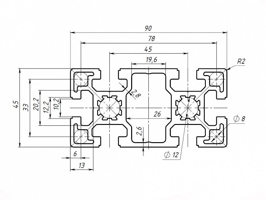 Серия 45 - универсальная серия профиля с т-образным пазом, предназначенная для построения несущих и средненагруженных конструкций. Является отличной альтернативой профиля Серии 40. Широко применяется при реализации крупных проектов (поточные линии, конвейеры, сборочные линии и участки) как профиль наилучшим образом сочетающий в себе высокую надежность и приемлемую цену.