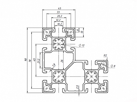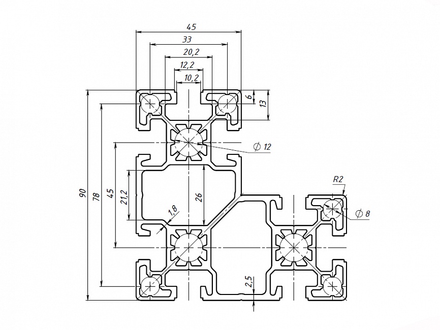 Серия 45 - универсальная серия профиля с т-образным пазом, предназначенная для построения несущих и средненагруженных конструкций. Является отличной альтернативой профиля Серии 40. Широко применяется при реализации крупных проектов (поточные линии, конвейеры, сборочные линии и участки) как профиль наилучшим образом сочетающий в себе высокую надежность и приемлемую цену.