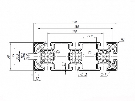 Профиль конструкционный 50х150SL (Без покрытия) Арт. 6515SLX
