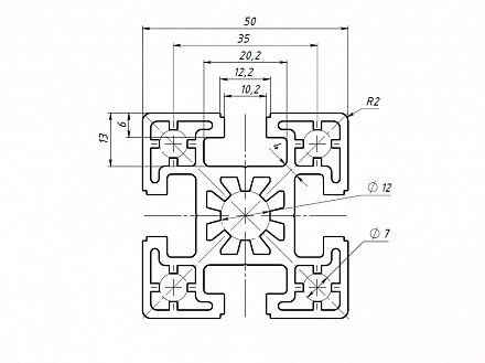 Профиль конструкционный 50х50 (Без покрытия) Арт. 655X