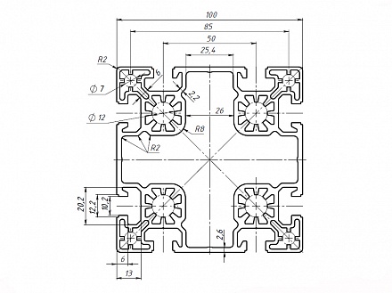Профиль конструкционный 100х100L (Ан. серебро) Арт. 61010L