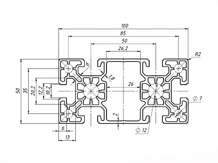 Профиль конструкционный 50х100SL (Ан. серебро) Арт. 6510SL