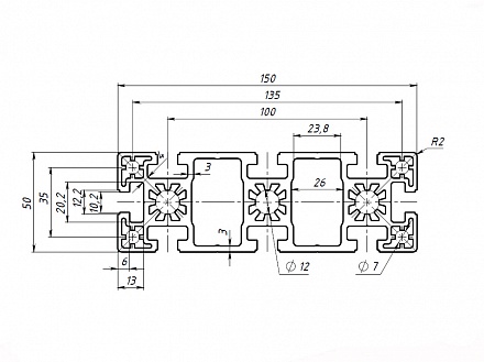 Профиль конструкционный 50х150 (Ан. серебро) Арт. 6515
