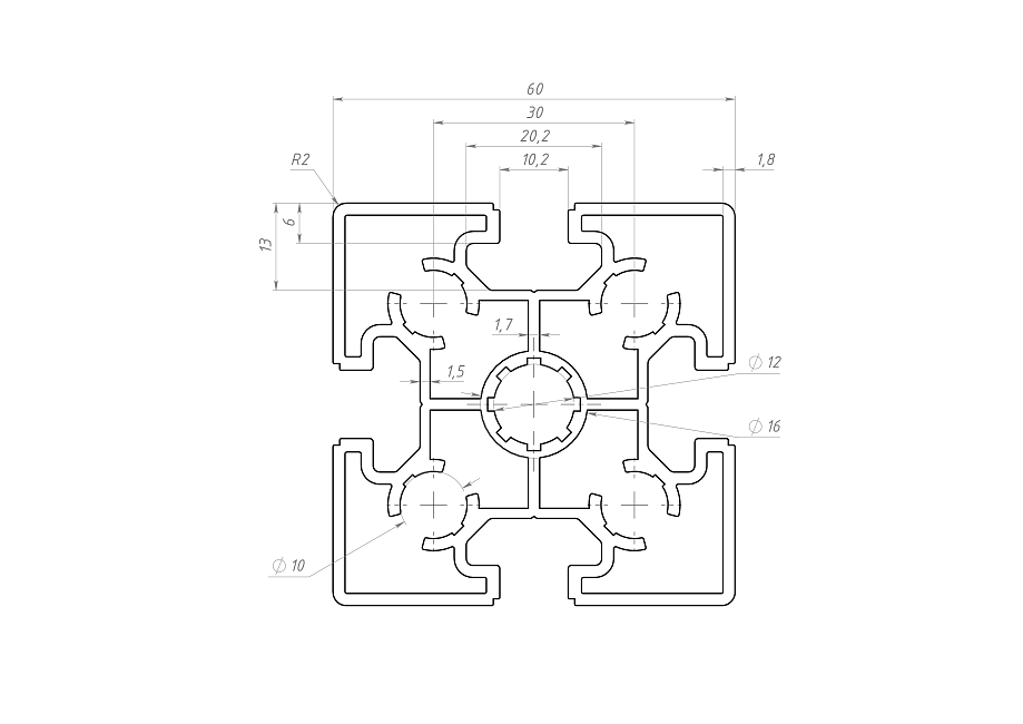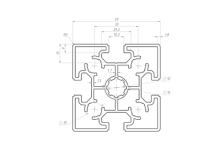 Этот профиль предназначен для создания прочных и устойчивых конструкций. Сечение 60x60 мм обеспечивает высокую несущую способность, а наличие четырех пазов позволяет легко соединять элементы между собой, обеспечивая надежность и долговечность каркаса. Идеально подходит для монтажа различных строительных и производственных конструкций, где важны прочность и устойчивость.
