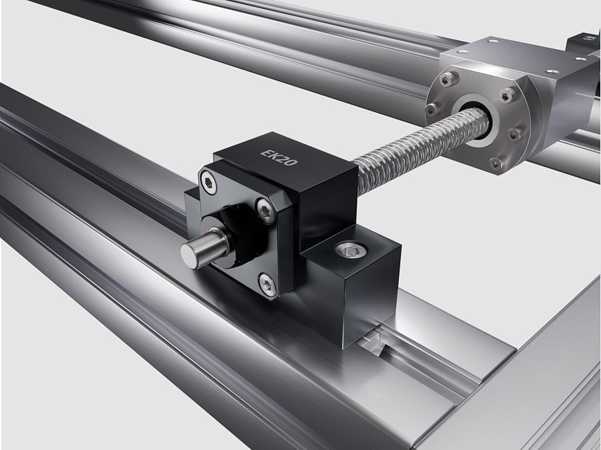 Комплект представляет собой готовое решение для построения прецизионной линейной оси. В состав входит шарико-винтовая пара SFS2510 с гайкой, набор опорных подшипниковых блоков и модуль крепления гайки.