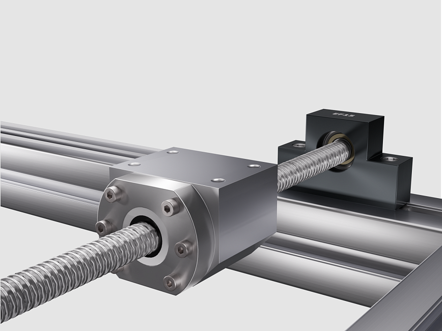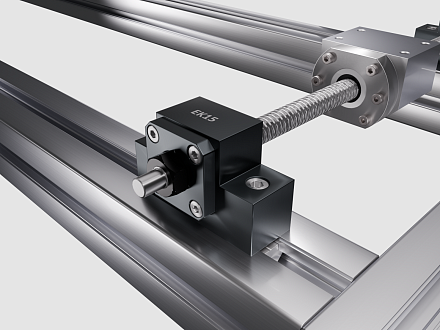 Комплект представляет собой готовое решение для построения прецизионной линейной оси. В состав входит шарико-винтовая пара SFU2005 с гайкой, набор опорных подшипниковых блоков и модуль крепления гайки.