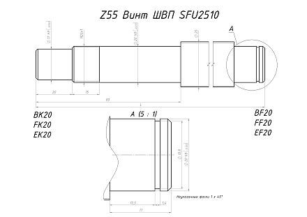 - Винт ШВП SFU2510, Z55 — 0 пог. м