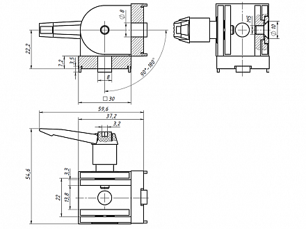 Шарнирный соединитель 30х30 используется для образования шарнирного соединения алюминиевых конструкционных профилей 30х30 под углом от 90 до 180 градусов. Крепеж №190 используется для крепления в паз профиля.