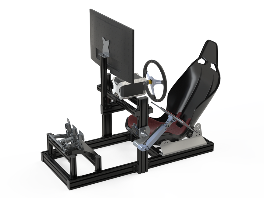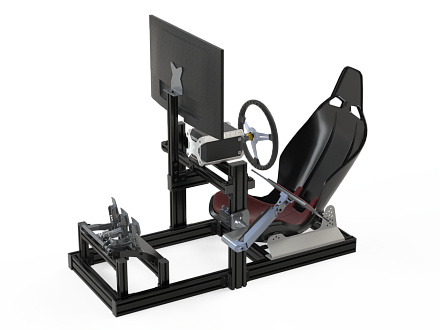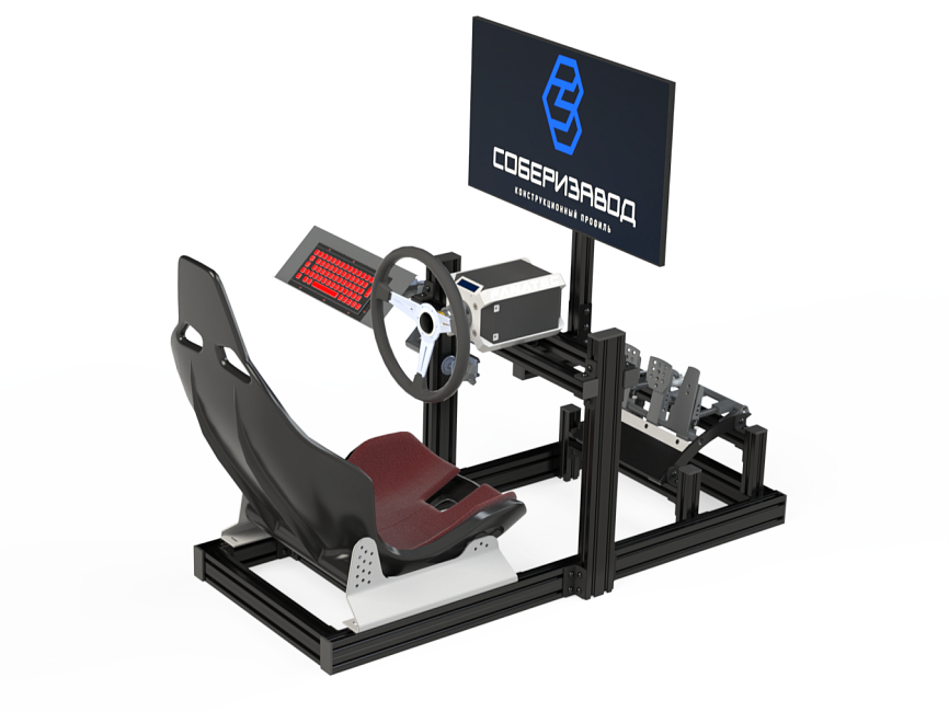 Кокпит для симрейсеров, выполненный из конструкционного алюминиевого профиля, предлагает широкие возможности для апгрейда. Он сочетает доступную цену с высоким качеством исполнения. Используемый профиль размером 40х80 мм и 40х40 мм гарантирует высокую прочность и надёжность конструкции.