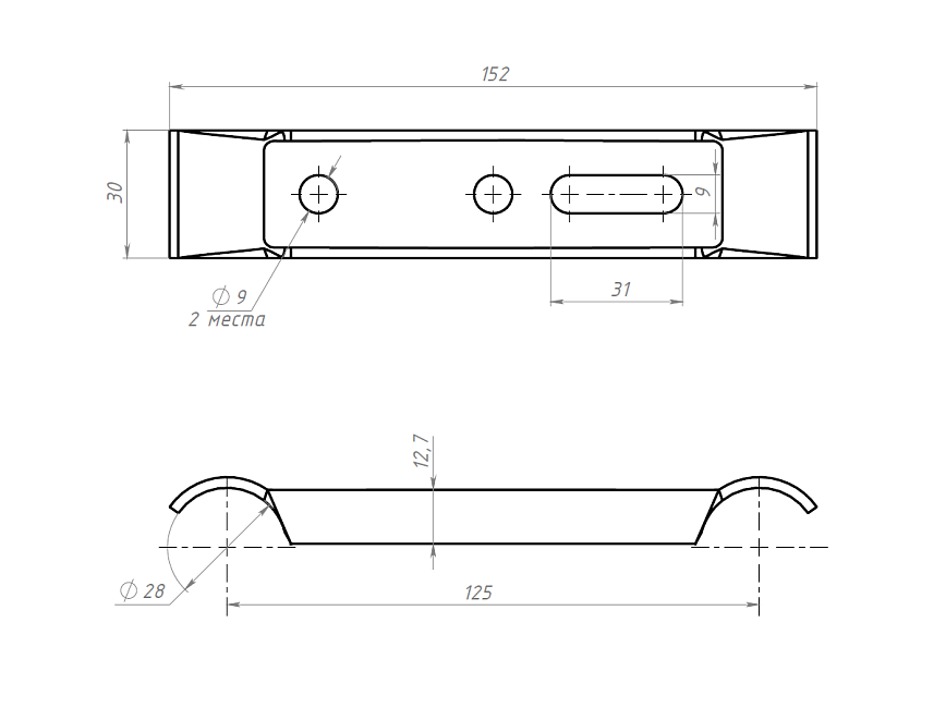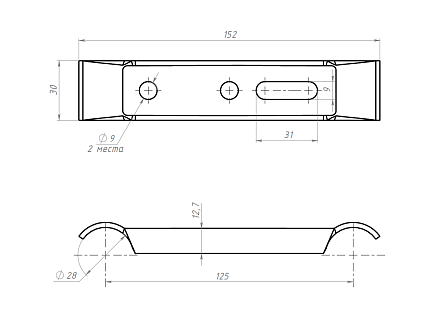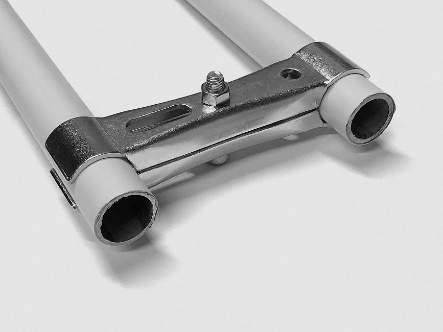 Стальной соединитель труб диаметром 28 мм, тип C. Соединитель используется для параллельного соединения труб и установки колёсных опор.