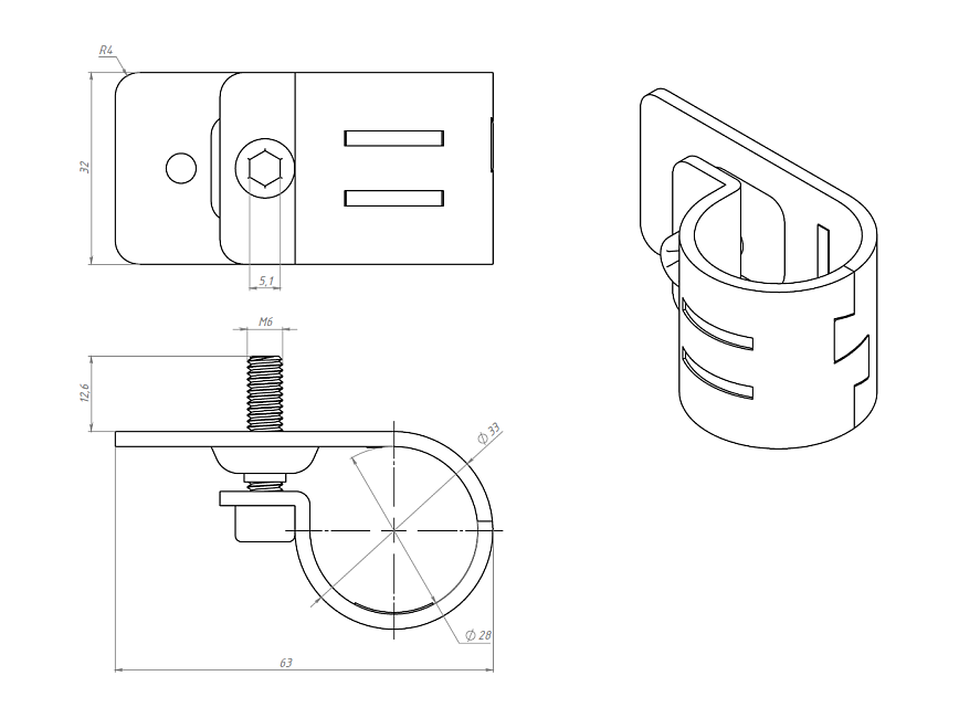 Используется совместно с алюминиевым трубным профилем D 28 мм в модульной трубной системе, которая представляет собой набор соединителей, роликовых направляющих (рольгангов) и других вспомогательных компонентов, позволяющих быстро изготовить специальные виды стационарного и мобильного оборудования и приспособлений, применимых на складе, сборочном производстве, таких как гравитационные стеллажи, тележки, рабочие столы и станции с возможностью их быстрой настройки, модификации.