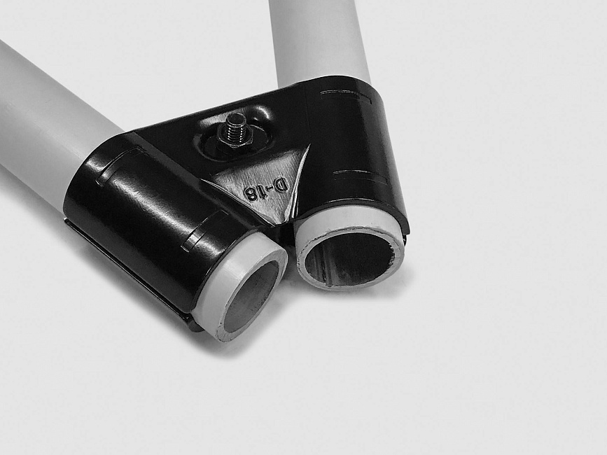 Используется совместно с алюминиевым трубным профилем D 28 мм в модульной трубной системе, которая представляет собой набор соединителей, роликовых направляющих (рольгангов) и других вспомогательных компонентов, позволяющих быстро изготовить специальные виды стационарного и мобильного оборудования и приспособлений, применимых на складе, сборочном производстве, таких как гравитационные стеллажи, тележки, рабочие столы и станции с возможностью их быстрой настройки, модификации.