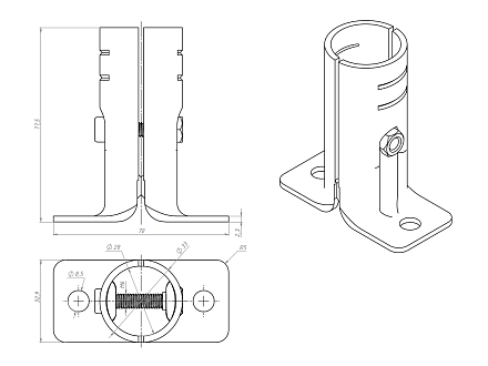 Используется совместно с алюминиевым трубным профилем D 28 мм в модульной трубной системе, которая представляет собой набор соединителей, роликовых направляющих (рольгангов) и других вспомогательных компонентов, позволяющих быстро изготовить специальные виды стационарного и мобильного оборудования и приспособлений, применимых на складе, сборочном производстве, таких как гравитационные стеллажи, тележки, рабочие столы и станции с возможностью их быстрой настройки, модификации.