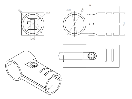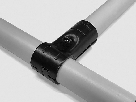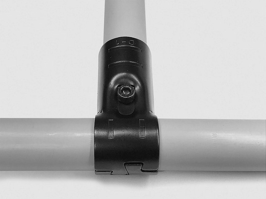 Кронштейн соединительный предназначен для перпендикулярного соединения профилей. Используется совместно с алюминиевым трубным профилем D 28 мм в модульной трубной системе, которая представляет собой набор соединителей, роликовых направляющих (рольгангов) и других вспомогательных компонентов, позволяющих быстро изготовить специальные виды оборудования и приспособлений, применимых на складе, сборочном производстве, таких как гравитационные стеллажи, тележки, рабочие столы и станции с возможностью их быстрой настройки, модификации.