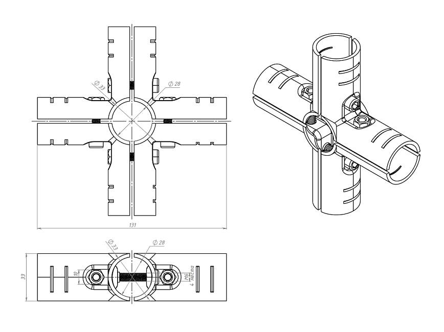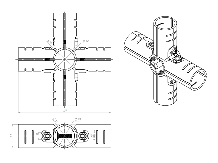 Кронштейн соединительный предназначен для пятистороннего соединения профилей.