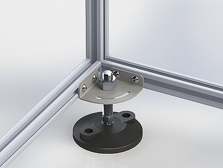 Адаптер, может использоваться для установки регулируемой опоры М12 или колеса, при установки на пол конструкции из алюминиевого конструктивного станочного профиля 20 серии или как соединительная пластина.