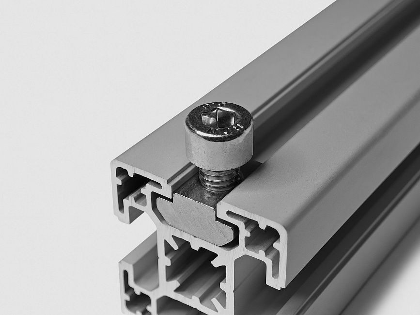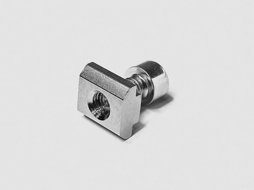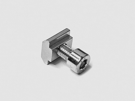 Пазовый сухарь монтируется в паз профиля с торца и служит для закрепления разных элементов и конструкций с использованием соответствующих болтов и винтов. Основное преимущество перед обычными Т-гайками состоит в расширенной зоне контакта и повышенных нагрузочных характеристиках.