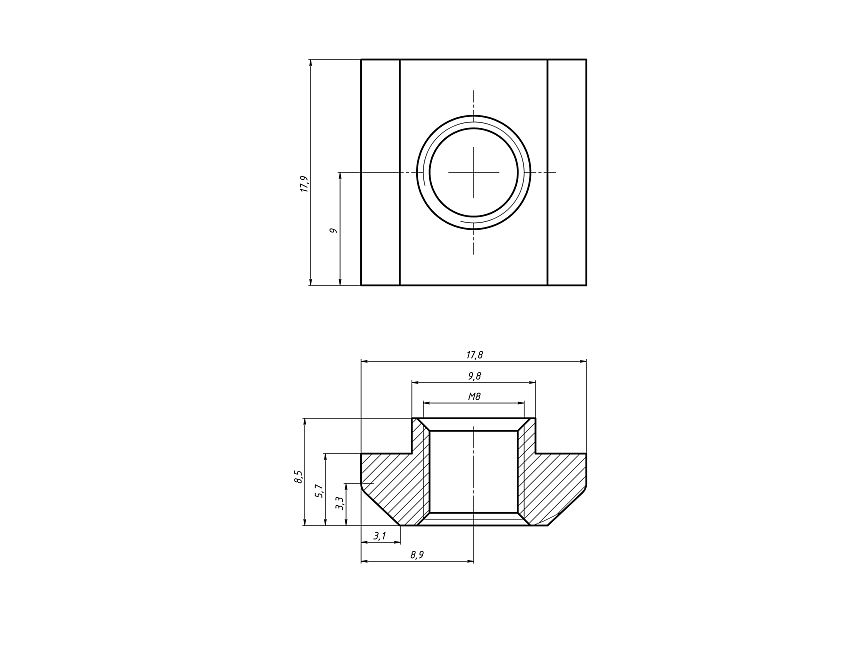 Сухарь пазовый М8, паз 10, нерж., A864 Арт. A864
