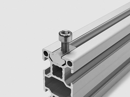 Сухарь пазовый позволяет крепить к профилю различные дополнительные элементы и конструкции, используя болты и винты с соответствующей резьбой. Сухарь вводится в паз с торца профиля. Отличие данных элементов от Т-гаек заключается в их большей площади контакта и большей несущей способности.