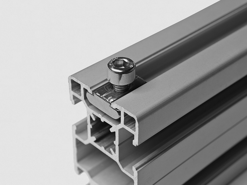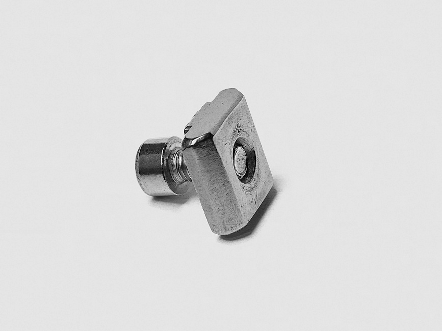 Сухарь пазовый устанавливается в профильный паз с торца и используется для крепления различных деталей и конструкций с применением подходящих болтов или винтов. В отличие от обычных Т-гайек, характеризуется большим контактирующим участком и обеспечивает более высокую прочность и надежность соединений.