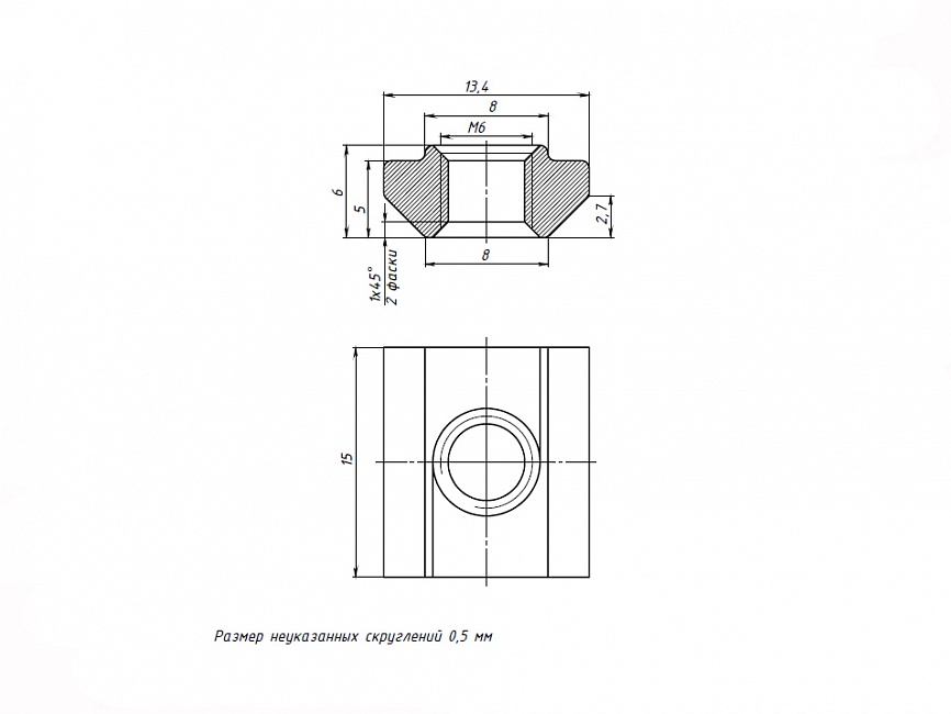 Сухарь пазовый М6, паз 8, A350 Арт. A350