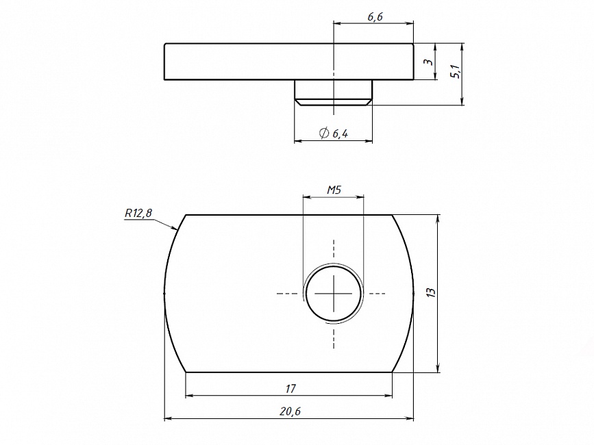 Сухарь пазовый плоский позволяет крепить к профилю различные дополнительные элементы и конструкции, используя болты и винты с соответствующей резьбой.