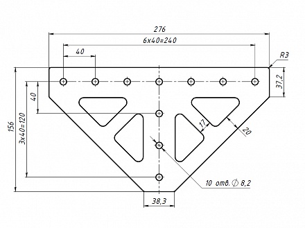 Т-соединитель 160x280 предназначен для  углового соединения алюминиевых конструкционных профилей серии 40 под углом 90 градусов.