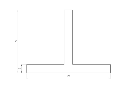 Этот профиль представляет собой прочный и надежный конструктивный элемент с характерной формой в виде буквы "Т". Изделие выполнено из алюминия толщиной 2 мм, что обеспечивает отличную жесткость и устойчивость к механическим нагрузкам. Размеры профиля составляют 20 мм по ширине верхней полки и 15 мм по высоте стойки, что делает его универсальным решением для различных строительных и монтажных задач.