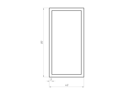 Профиль алюминиевый, прямоугольник 40x80x3 (Без покрытия) Арт. PR4080S3X