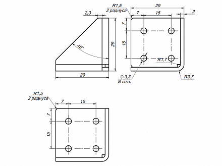 Угловой соединитель стальной 30х30S предназначен для соединения алюминиевых конструкционных станочных профилей под углом 90 градусов.
