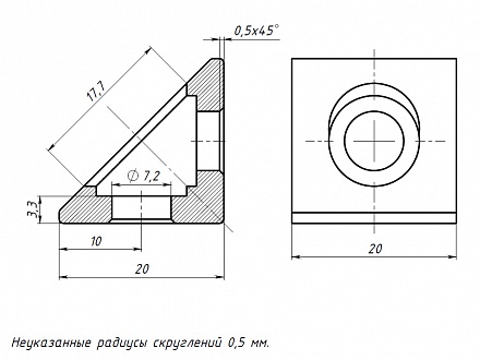 Угловой алюминиевый соединитель 20х20 предназначен для соединения алюминиевых конструкционных станочных профилей под углом 90 градусов.