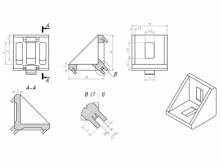Угловой алюминиевый соединитель 20х20 предназначен для соединения алюминиевых конструкционных станочных профилей под углом 90 градусов.