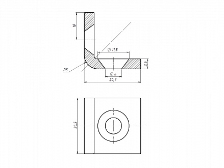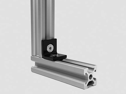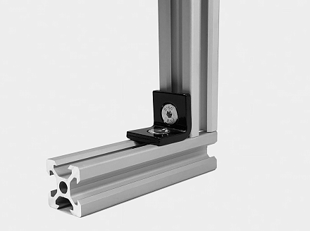 Угловой стальной соединитель 20х20 предназначен для соединения алюминиевых конструкционных станочных профилей под углом 90 градусов.