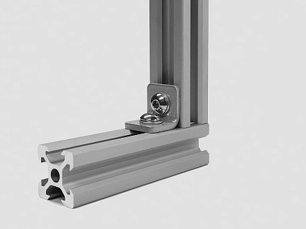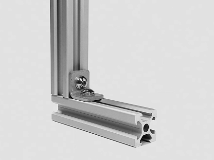 Угловой соединитель стальной 20х20L предназначен для соединения алюминиевых конструкционных станочных профилей под углом 90 градусов.