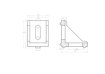 Угловой алюминиевый соединитель 30х30 предназначен для соединения алюминиевых конструкционных станочных профилей под углом 90 градусов.