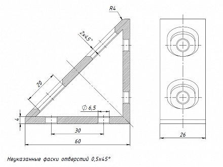 Угловой алюминиевый соединитель 30х60 предназначен для соединения алюминиевых конструкционных станочных профилейпод углом 90 градусов.