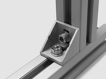 Угловой алюминиевый соединитель 40х40 предназначен для соединения алюминиевых конструкционных станочных профилей с 8 пазом под углом 90 градусов.