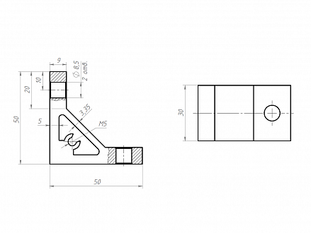 Угловой алюминиевый соединитель 50х50х30 предназначен для соединения алюминиевых конструкционных станочных профилейпод углом 90 градусов.